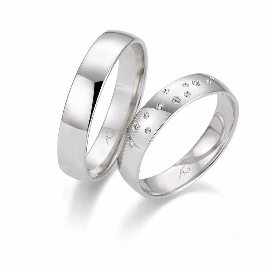 Eheringe Set, Weißgold, 4,5 mm, Brillanten