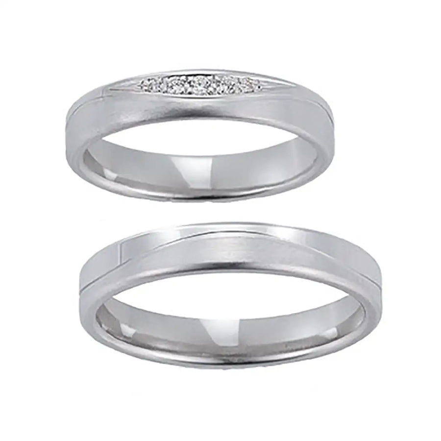 Eheringe Set, Weißgold, 4 mm, Brillanten