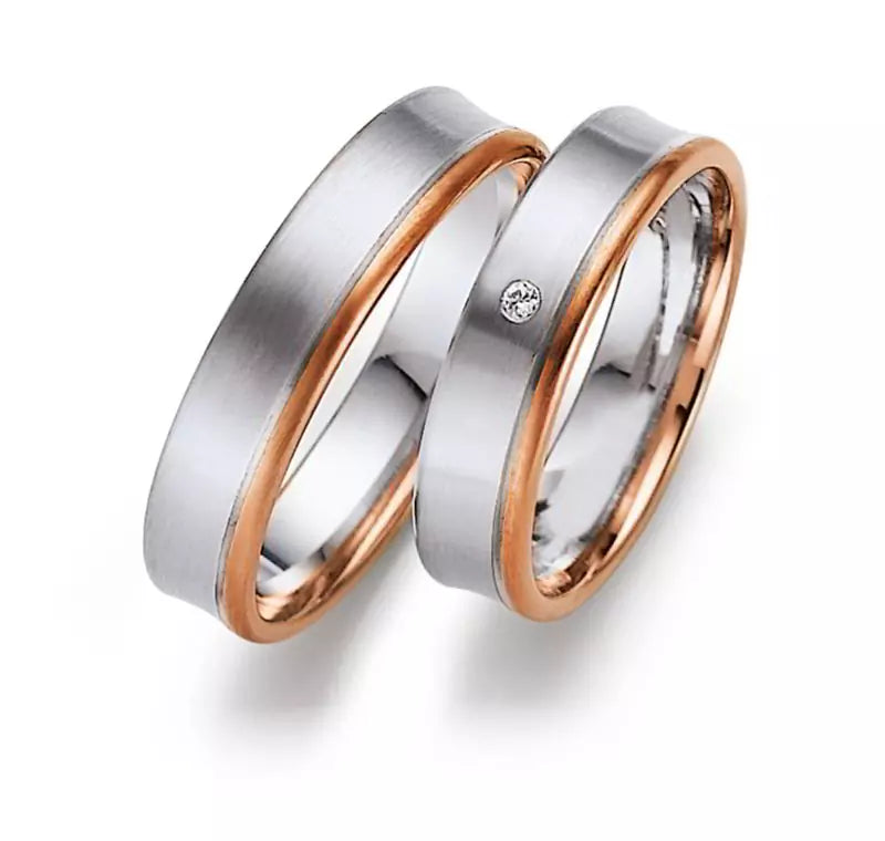 Eheringe Set, Weißgold/Roségold, 5 mm, Brillanten