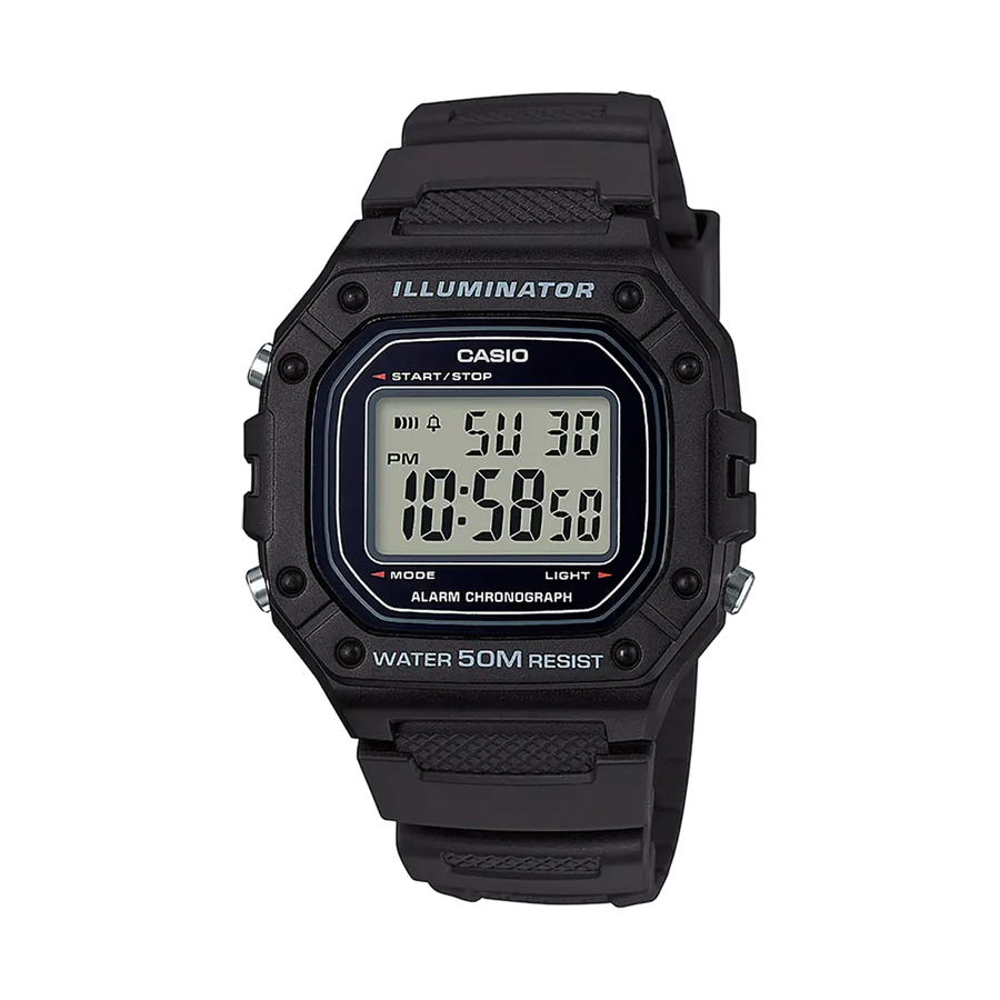 Wasserbeständigkeit bis 50 Meter Tiefe • 1/100-Sek.-Stoppuhr • Täglicher Alarm • LED-Hintergrundbeleuchtung.