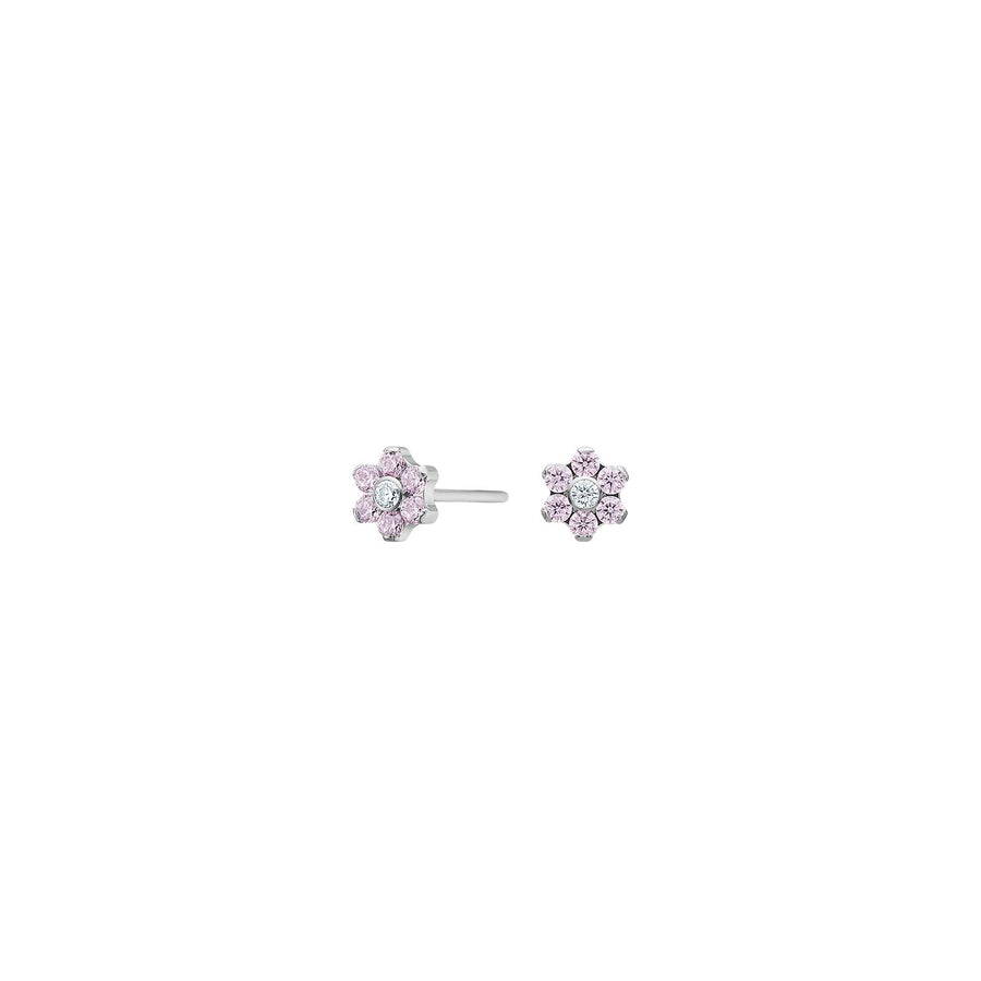 Titanium Ohrstecker, Blume, Zirkonia rosa, 4,5 mm