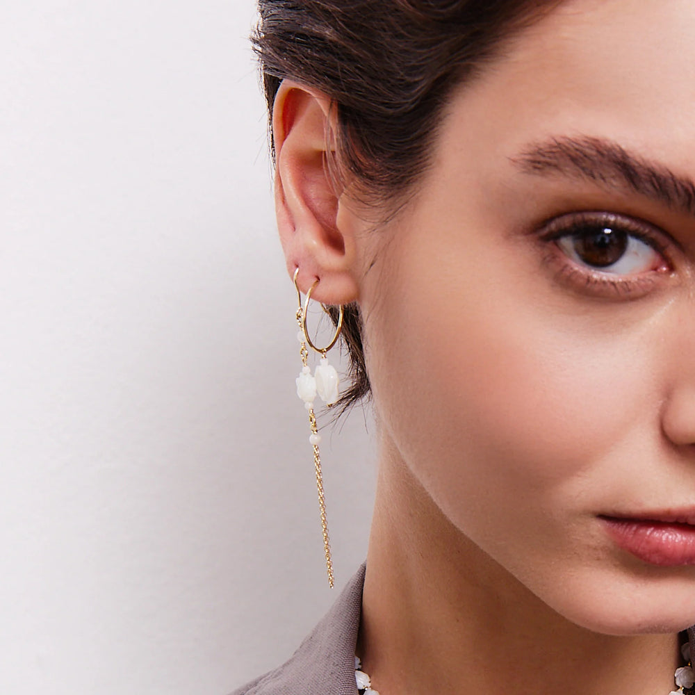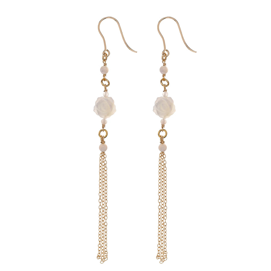 Elegante Ohrhänger aus hochwertigem 925er Sterlingsilber, verziert mit zarten Perlmuttrosen. Die feinen, baumelnden Silberketten verleihen diesen Schmuckstücken eine anmutige Bewegung und einen Hauch von Raffinesse. Die "Alice" Ohrhänger sind die perfekte Wahl für jeden Anlass, ob Alltag oder besondere Momente.