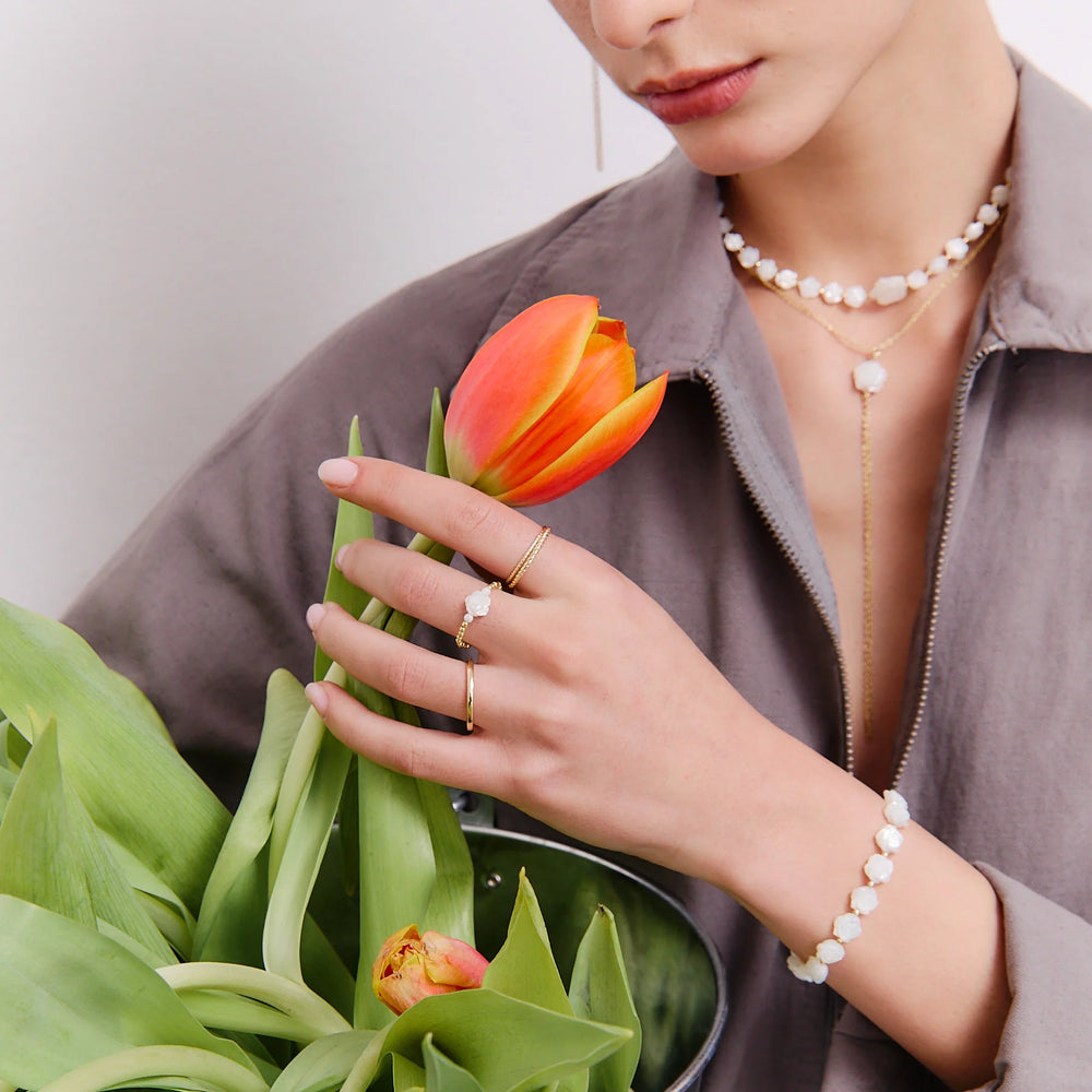 Ein zeitloser Ring aus 925er Sterlingsilber mit einer wunderschönen Perlmuttrose in der Mitte, einem Symbol zarter Schönheit und Raffinesse.
