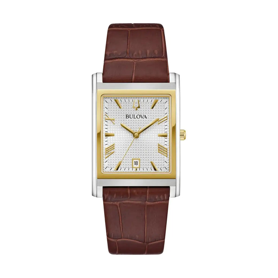 Die rechteckige Herrenuhr Sutton 98B430 ist das neue Aushängeschild für klassische Eleganz. Das schlanke, silberfarbene Edelstahlgehäuse mit gebürstetem und poliertem Finish ist mit einem Saphirglas ausgestattet und verfügt über durchdachte Winkel und Linien, die für eine beeindruckende Präsenz am Handgelenk sorgen.