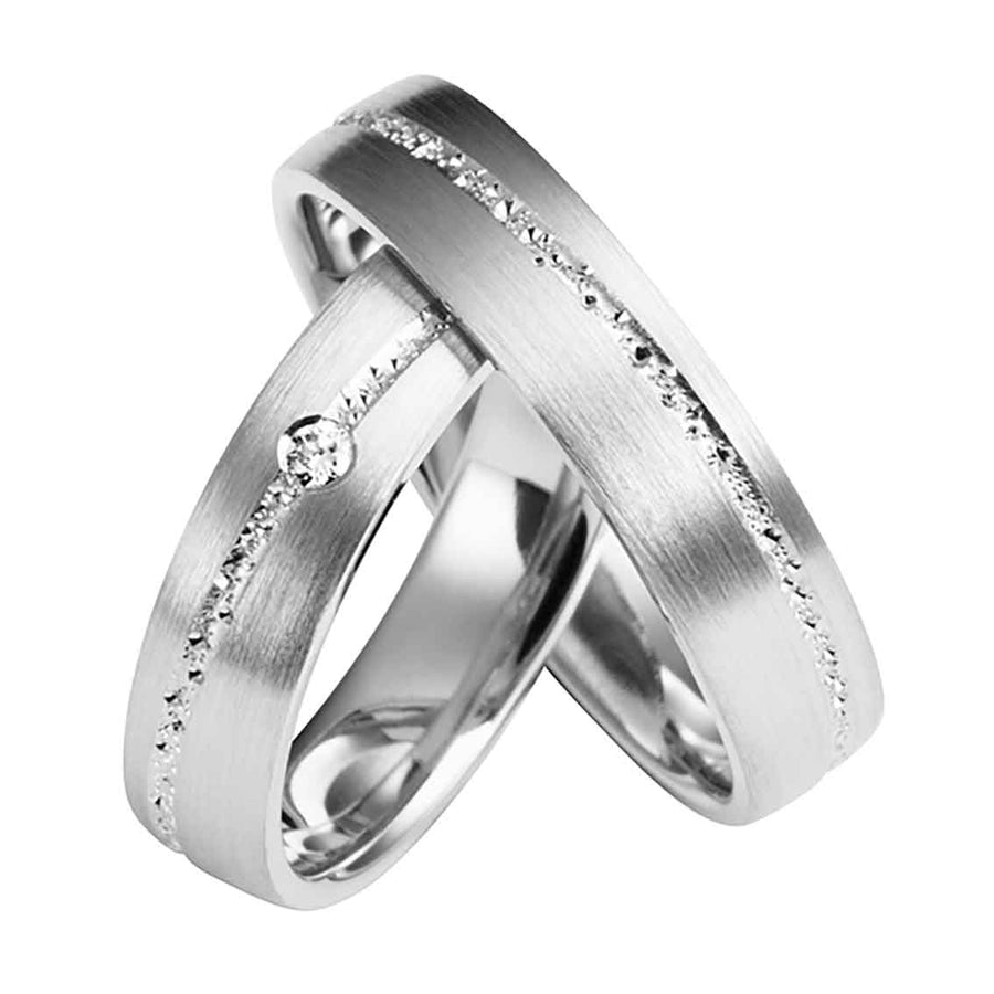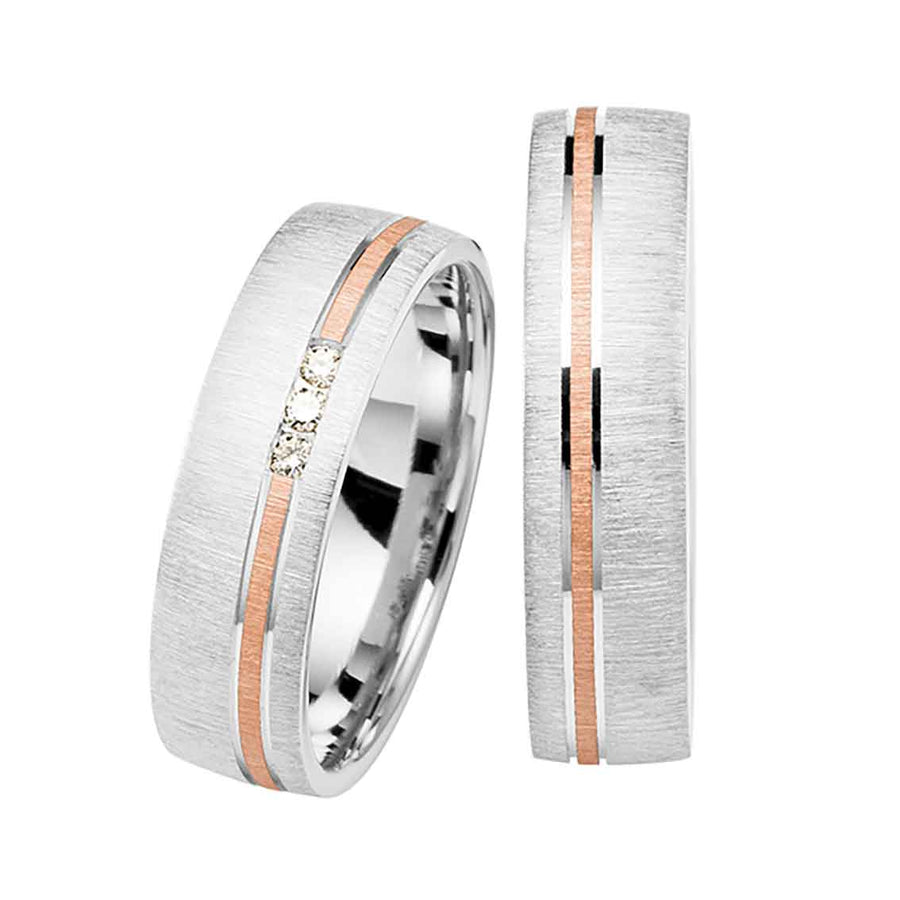 Eheringe Set, 5/7 mm, Weißgold/Rotgold, Brillanten