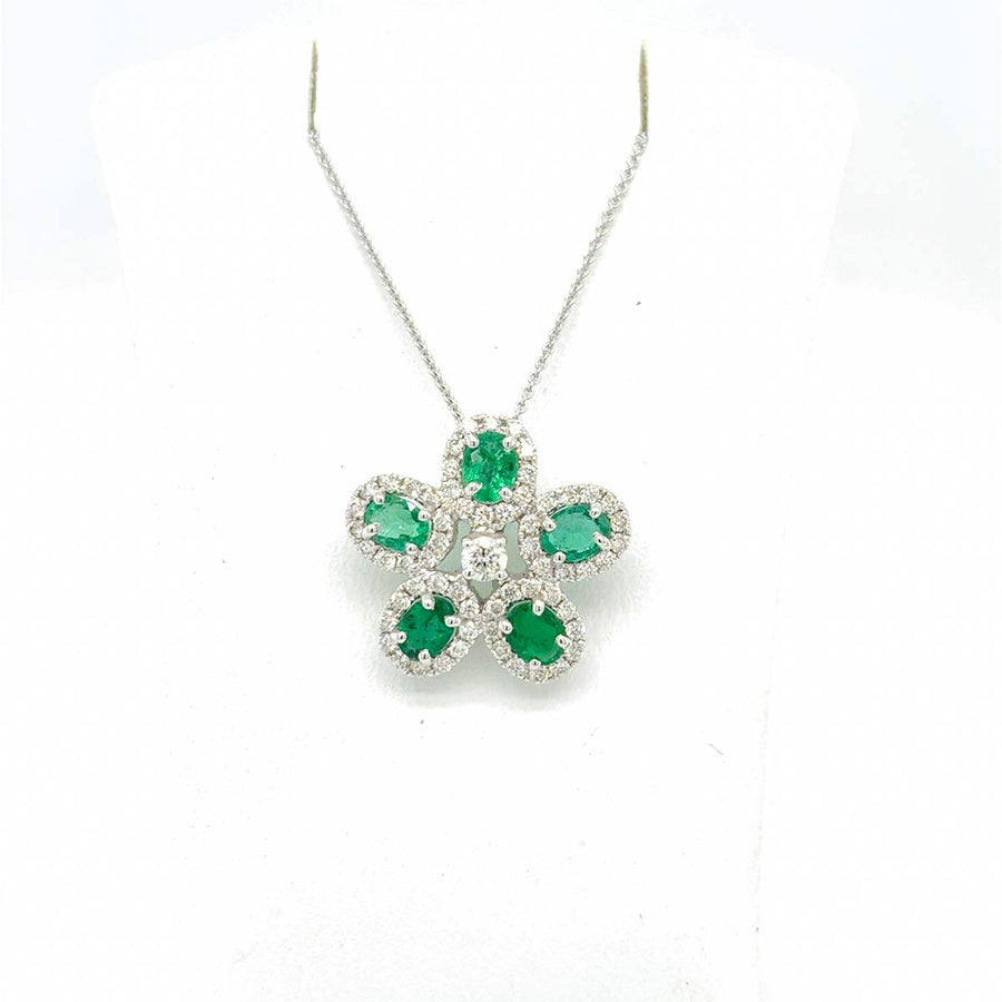 Kette mit Blumen-Anhänger, 750 Weißgold, Smaragde und Brillanten