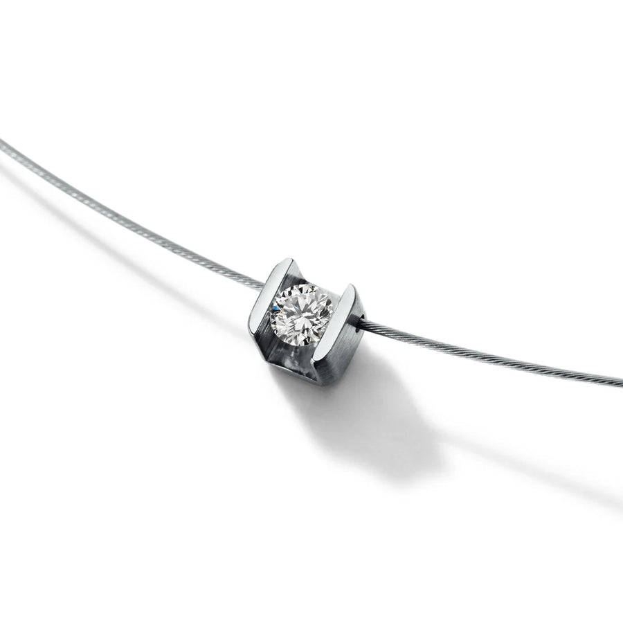 Diamantcollier mit Brillanten CUBE, Edelstahl mit Seil 0,5 mm