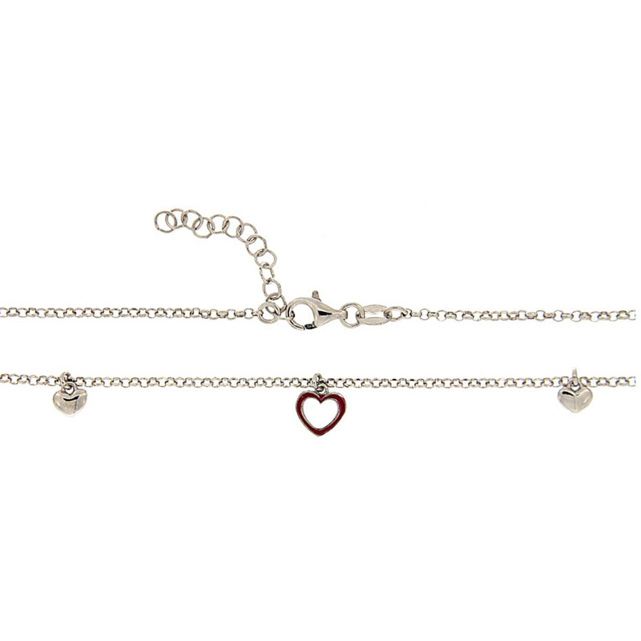 Fußkette Herzen tlw. rot gelackt, 24-27 cm, Sterlingsilber