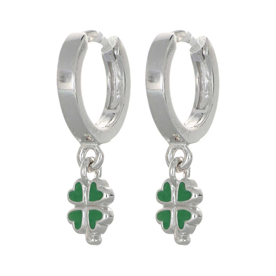 Ohrringe Kleeblatt grün gelackt, Sterlingsilber