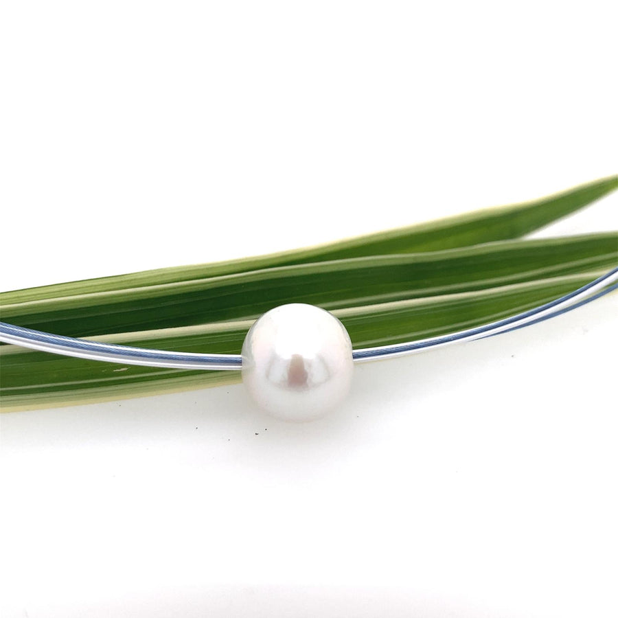 Collier mit Süßwasserperle, Stahlreif 5-reihig