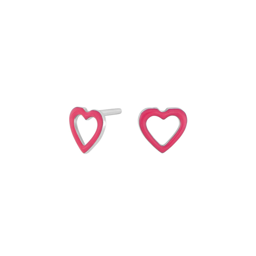NOA Kids Ohrstecker, Herzform, rosa Emaille, Sterlingsilber