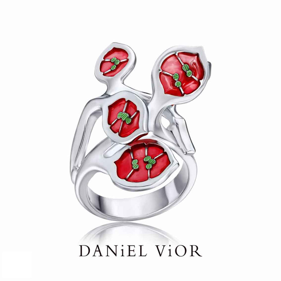 Daniel Vior Ring LUNARIA, Sterlingsilber, rot emailliert