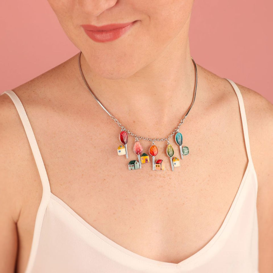 Die Halskette Mon P'tit village vereint farbenfrohe Harze mit kunstvoll handgemalten Mustern zu einem einzigartigen Schmuckstück. Jedes Detail spiegelt kreative Fantasie wider und macht die Kette zum perfekten Accessoire, das Ihrem Look lebendige Akzente verleiht. Tragen Sie ein kleines Kunstwerk, das Individualität und Stil auf charmante Weise verbindet.
