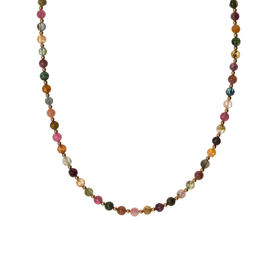 Die Halskette Tormalina ist Ihr neuer Lieblings-Layering-Partner mit bunten Steinen, die jeden Look zum Leben erwecken. Mit einer Länge von 40 cm plus 4 cm Verlängerung sitzt sie perfekt und lässt sich mühelos mit anderen Schmuckstücken kombinieren. Die farbenfrohe Steinbesetzung schafft spielerische Akzente, die Ihren persönlichen Stil unterstreichen und Ihrer Garderobe Tiefe verleihen. Ob solo getragen oder geschichtet mit anderen Ketten – dieses vielseitige Schmuckstück ist der ideale Begleiter für jeden Tag und verleiht Ihrem Look das gewisse Etwas.
