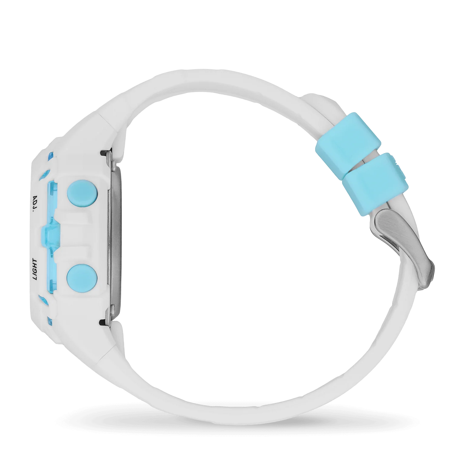 Entdecken Sie die ICE digit explorer - White blue. Diese weiße Uhr mit blauen Details vereint Stil, Komfort und Praktikabilität dank ihres Silikonarmbands und ihres leichten Kunststoffgehäuses. Ihr digitales Display ermöglicht ein einfaches und schnelles Ablesen der Uhrzeit. Mit diesem frischen und stilvollen Modell werden Sie alle Blicke auf sich ziehen. Diese Uhr ist lustig und farbenfroh und verleiht jedem Outfit einen Hauch von Vitalität. Ein unverzichtbares Accessoire für junge (oder auch nicht) Abenteurer, die sich selbstbewusst von der Masse abheben wollen. Dieser Fantasieschmuck wird Köpfe verdrehen und Ihrem Look eine einzigartige Note verleihen.