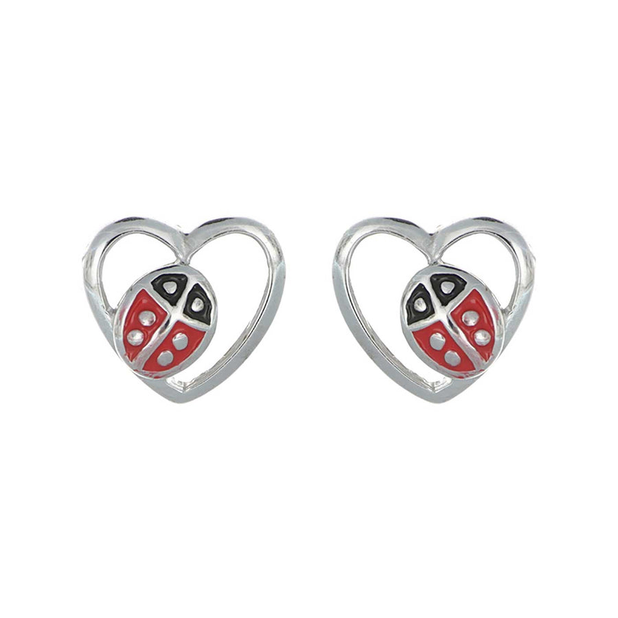 Ohrstecker, Herz/Marienkäfer teilweise gelackt