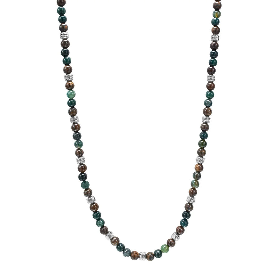 SON Halskette Herren Edelstahl mit Moosachat, Ilmenit & Bronzit 50+5cm