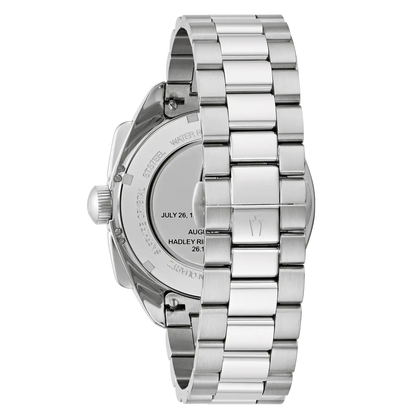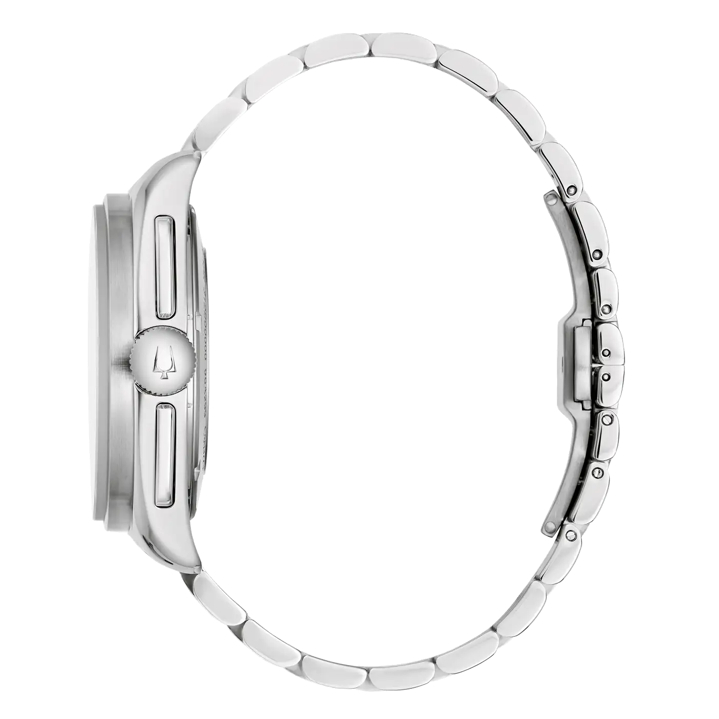 Die schlanken Chronographendrücker und die Krone mit dem charakteristischen Bulova-Stimmgabel-Logo sind ideal bei 3 Uhr positioniert. Das Edelstahlarmband mit Faltschließe sorgt für hohen Tragekomfort bei einem Gesamtgewicht von nur 182 Gramm.