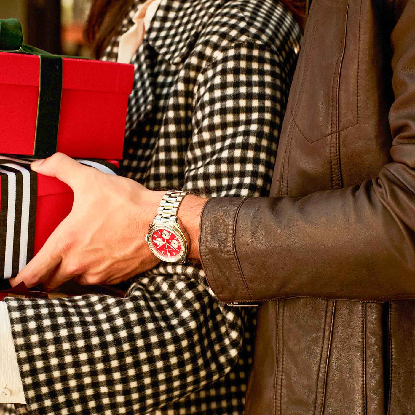 • Zifferblatt: Rot-silber "Panda"-Design mit Leuchtindexen