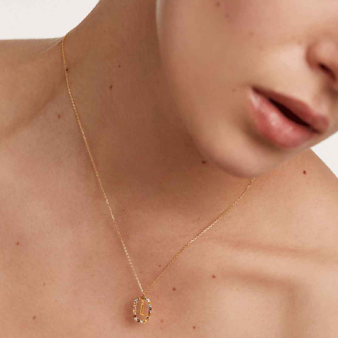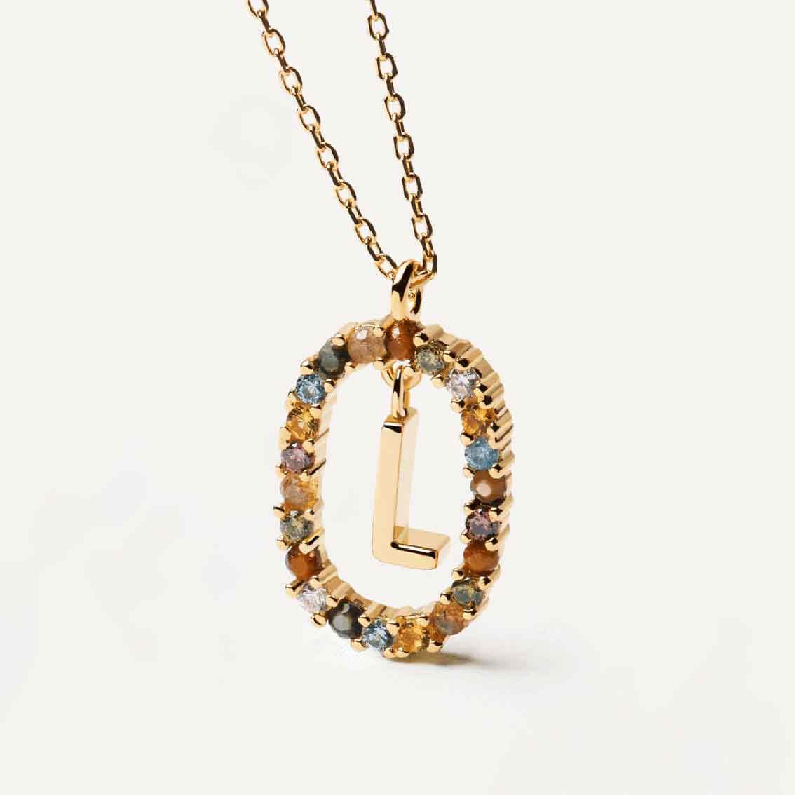 Die L Buchstaben-Halskette von PD Paola vereint zeitlose Eleganz mit persönlicher Note. Gefertigt aus hochwertigem 925er Sterlingsilber mit 18 Karat Goldplattierung und einer wunderschönen Kombination aus Tigerauge, Labradorit, Perlmutt und bunten Kristallen – ein einzigartiges und bedeutungsvolles Schmuckstück.