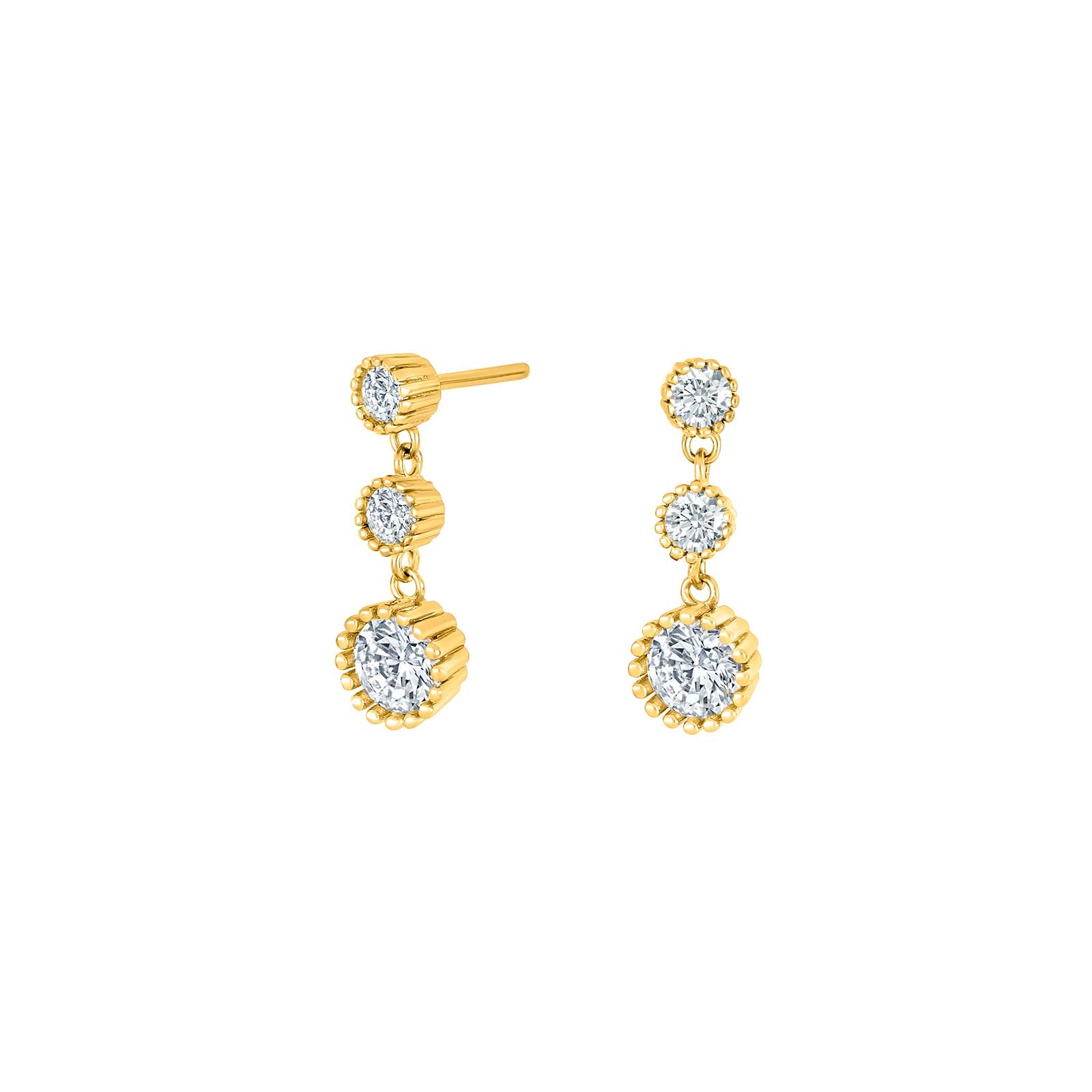 Würdest du gern etwas mehr aus dir machen? Dann entscheide dich für diese Ohrringe, die mit drei funkelnden Zirkonia in zwei verschiedenen Größen verziert sind. Ein stilvolles Design, das garantiert Aufmerksamkeit erregt.
