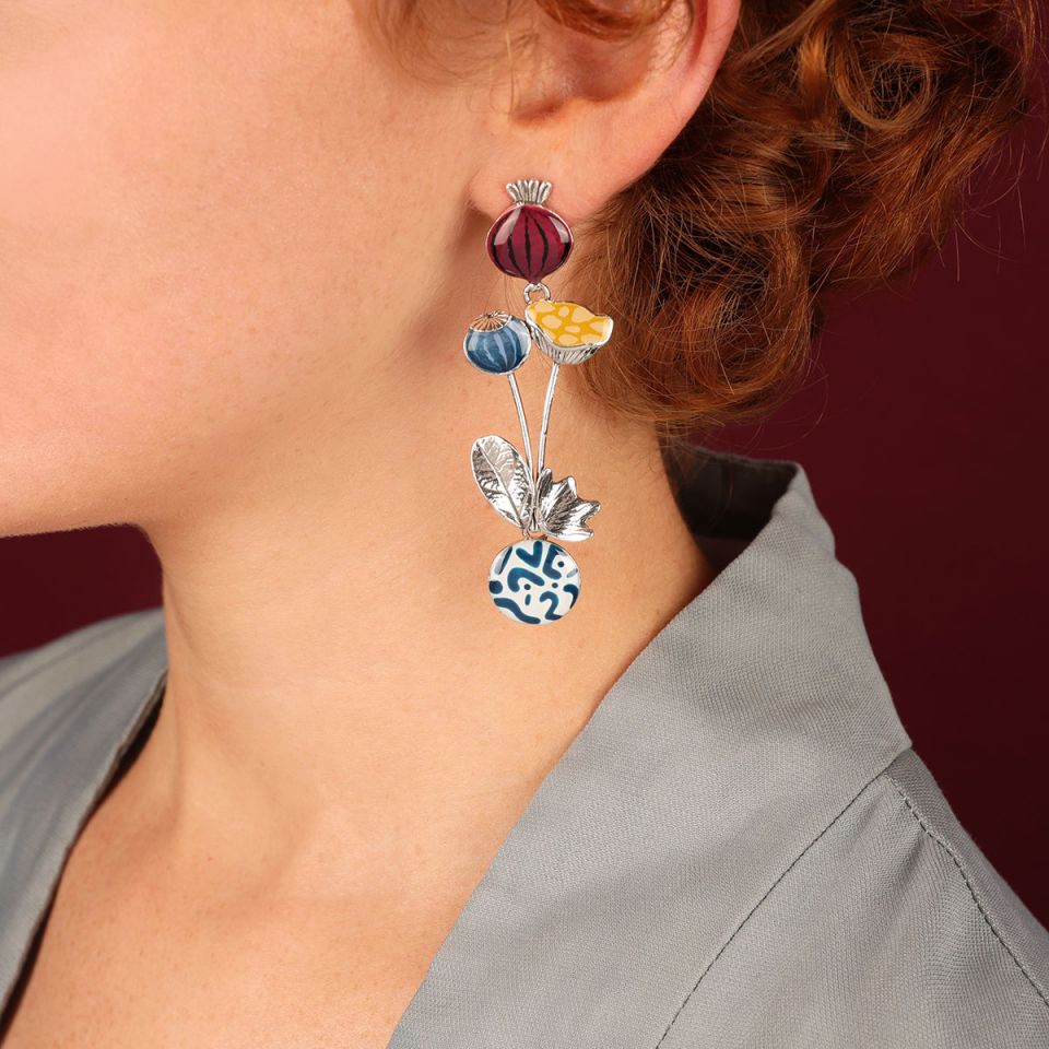 Taratata Ohrhänger Opium – Bunte Sommer-Ohrringe mit handgemalten Mohnblumen