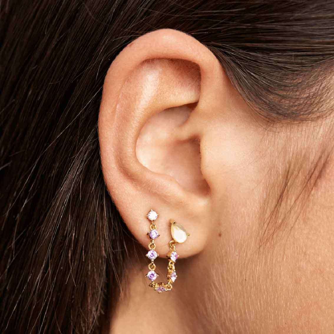 Die Joanne Ohrringe von PD Paola vereinen zeitlose Eleganz mit farbenfroher Lebendigkeit. Gefertigt aus hochwertigem 925er Sterlingsilber mit 18 Karat Goldplattierung und einer wunderschönen Kombination aus Lavendel-Zirkonia, Perlmutt und gelbem Kristall – ein ausdrucksstarkes und vielseitiges Schmuckstück.