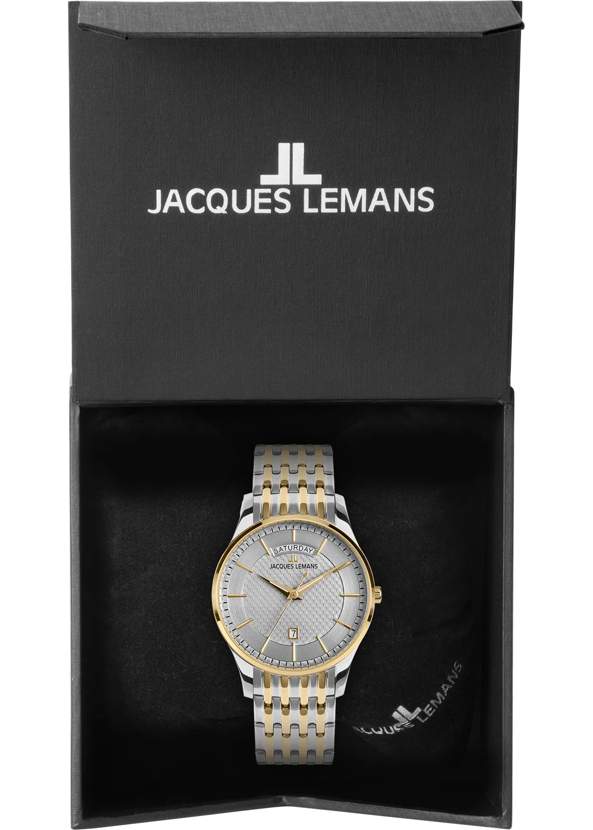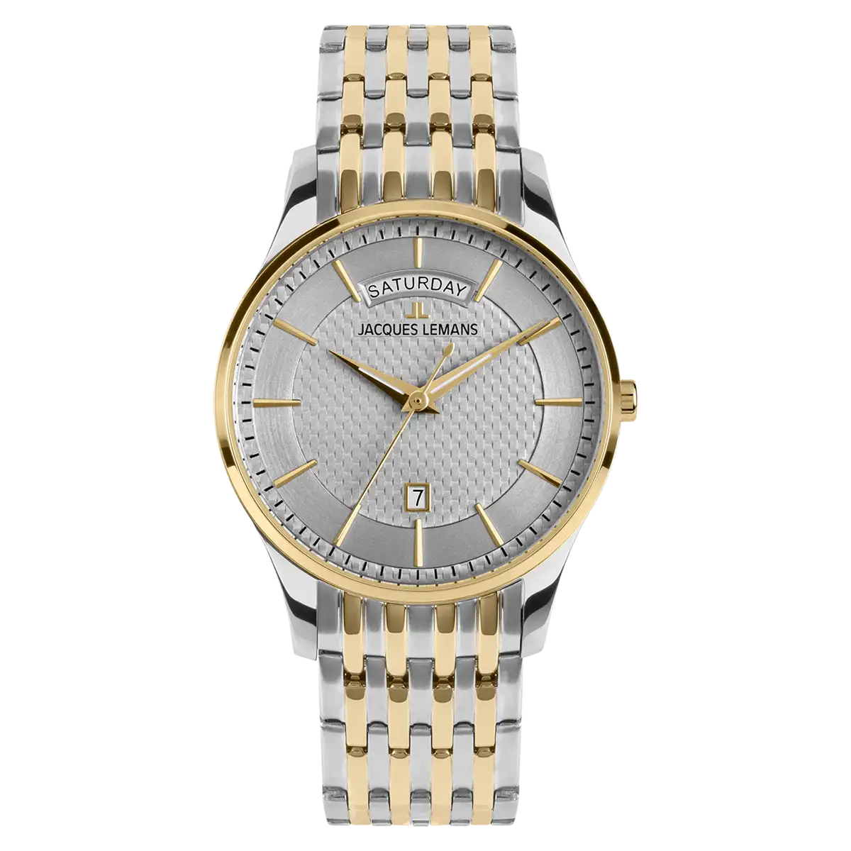 Die Jacques Lemans London 1-2193J vereint klassisches Design mit praktischer Funktionalität. Das edle IP-vergoldete Edelstahlgehäuse in Bicolor-Optik kombiniert mit einem hochwertigen Bicolor-Gliederarmband macht diese Herrenuhr zum perfekten Begleiter für Business und Freizeit.