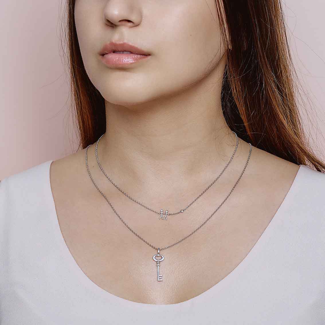 Die Together My Love Halskette von byBiehl ist den Menschen gewidmet, die Sie wertschätzen. Zwei stilisierte Figuren aus hochwertigem 925er Sterlingsilber symbolisieren „Dich und mich" oder zwei Personen, die Sie lieben – ein bedeutungsvolles Schmuckstück mit emotionaler Tiefe.