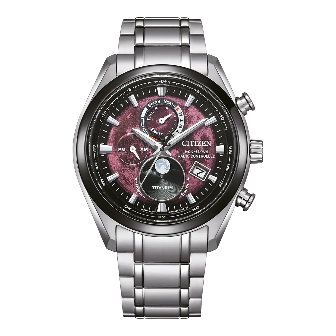 Es handelt sich um die weltweit erste Mondphasenuhr in Kombination mit der Innovation der atomaren Zeitmessung von Citizen. Dieses Modell zum 30-jährigen Jubiläum ist beeindruckend. Das Design verkörpert die Mondoberfläche und ein Fenster bei 6 Uhr zeigt die aktuelle Mondphase an.