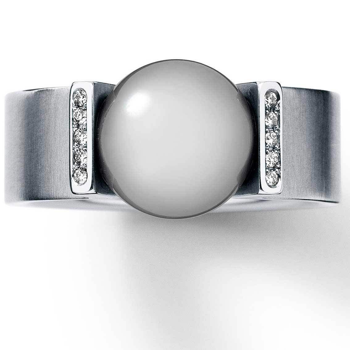 Humphrey Ring VICTORY Edelstahl 7 mm, Perle eingespannt - My Fine Jewellery