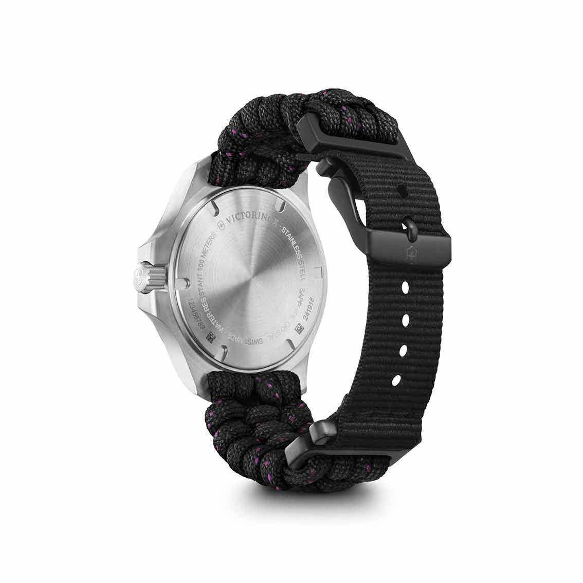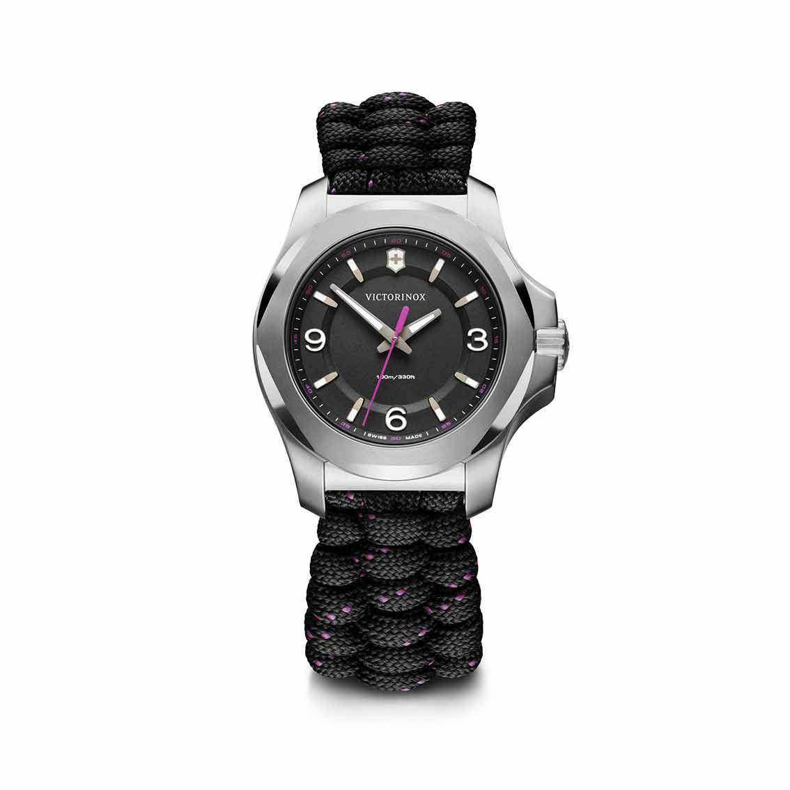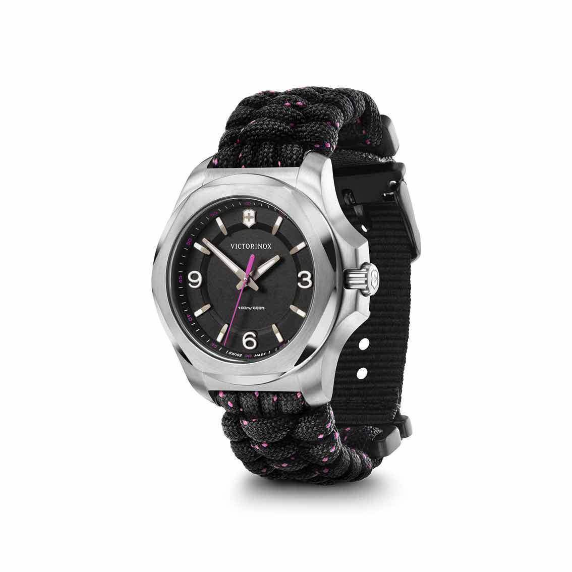 Eine leichte, souveräne Uhr, die jedes Abenteuer mitmacht. Die I.N.O.X. V: Fortschrittlich, funktional und formvollendet. Ein Schweizer Zeitmesser, der neue Massstäbe im Design von Damenuhren setzt. Basierend auf dem ikonischen Design der originalen I.N.O.X. V für die anspruchsvolle Weltenbummlerin neu aufgelegt. Jetzt um 32% leichter und um 33% schlanker, mit einem superweichen Paracord-Armband, das ein neues Verschlusssystem mit zwei verschiedenen, austauschbaren Grössenverlängerungen bietet.