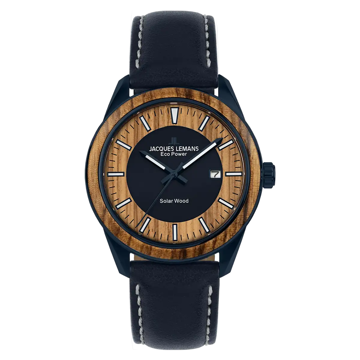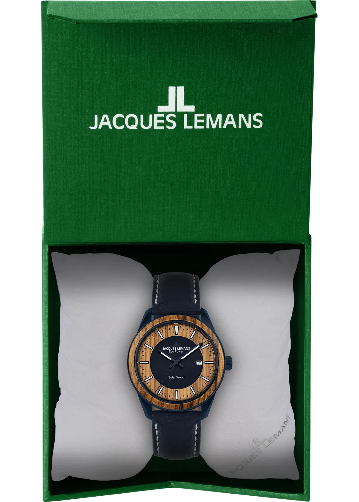 Die Jacques Lemans Eco Power 1-2116K vereint umweltfreundliche Solar-Technologie mit innovativem AppleSkin-Armband. Das edle Edelstahlgehäuse mit einzigartigem Holz-Zifferblatt macht diese Herrenuhr zum perfekten Begleiter für umweltbewusste Männer mit Stil.